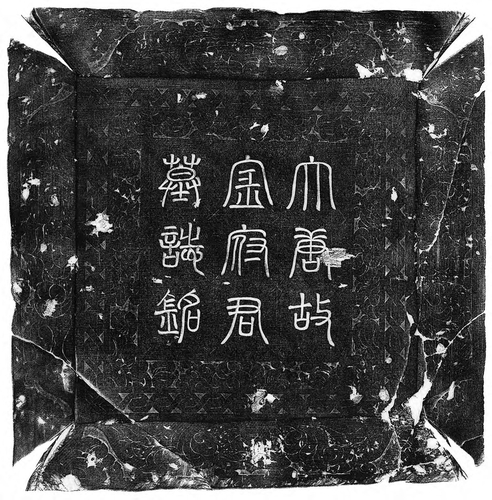 공개된 탁본 사진을 보면 덮개돌 윗면에는 '대당고김부군묘지명'(大唐故金府君墓誌銘)이라고 9자를 새겼고, 주변 부분은 구름과 보상화무늬로 장식돼 있다.