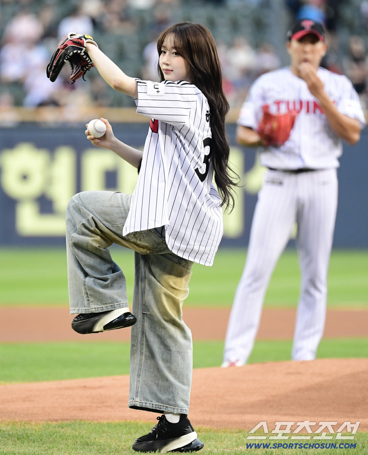 20일 잠실구장에서 열린 LG와 롯데의 경기. 경기 전 걸그룹 엔믹스 해원이 시구 행사를 했다. 시구를 하고 있는 해원. 잠실=송정헌 기자songs@sportschosun.com