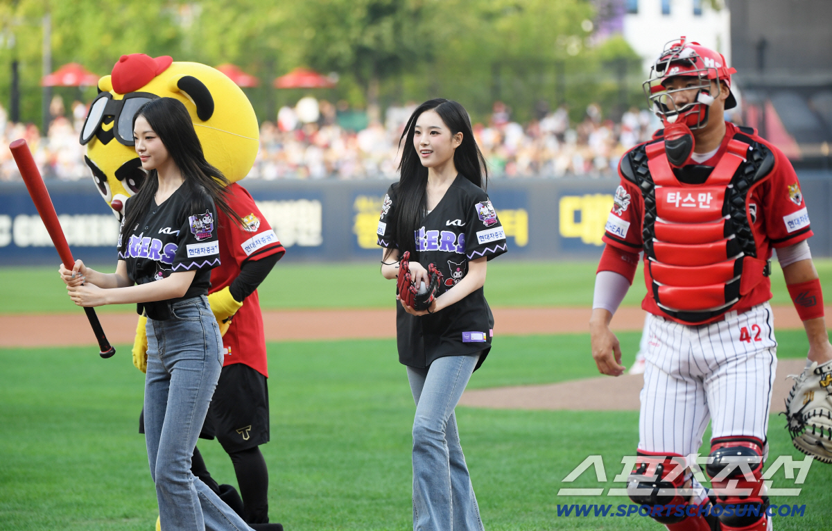 23일 광주 기아챔피언스필드에서 열린 KIA 타이거즈와 LG 트윈스의 경기. 트리플에스 지연이 시구, 린이 시타를 하고 있다. 광주=박재만 기자 pjm@sportschosun.com