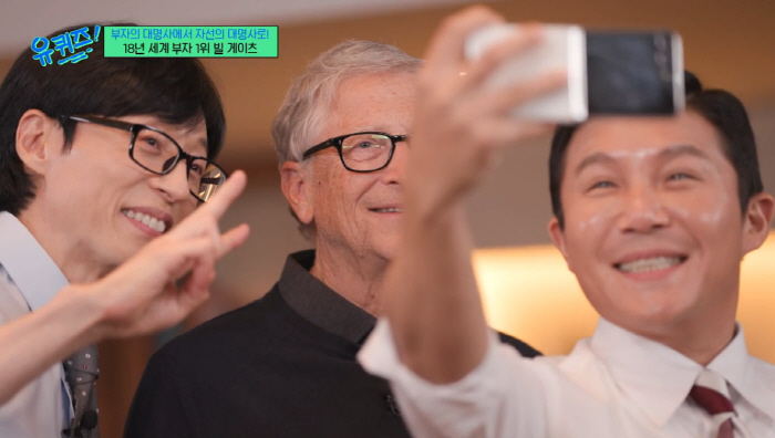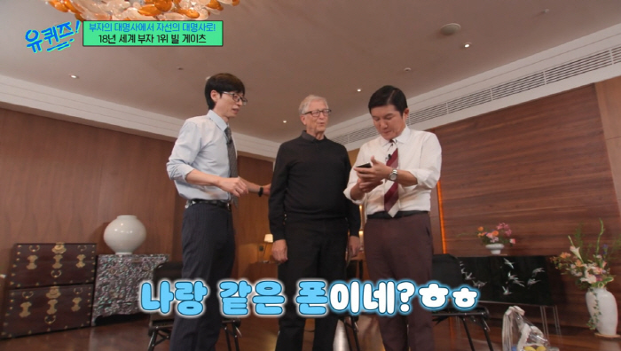 그때 조세호는 "사진 찍어도 되냐"고 물었고, 빌 게이츠는 자신과 똑같은 휴대폰을 조세호를 향해 "나랑 같은 폰이다"며 웃었다