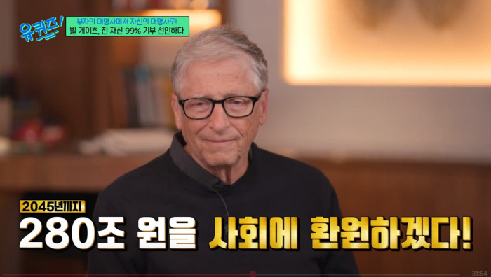 그동안의 기부 금액만 140조 원인 빌 게이츠는 올해 5월 전 재산의 99%에 해당하는 2000억 달러, 약 280조 원을 사회에 환원하겠다고 밝혔다. 또한 세상을 떠나면, 사람들이 나에 대해 많은 말을 할텐데 '부자로 죽었다'는 말은 나오지 않게 하겠다고 밝혔다고.