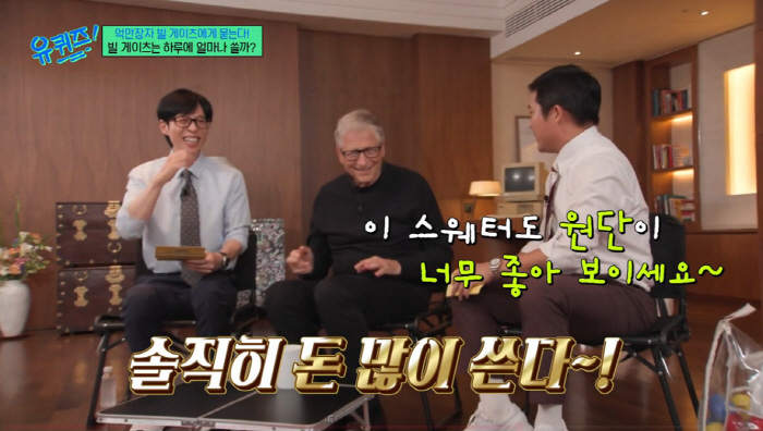 이를 들은 조세호는 "너무 궁금한 게 많다. 스웨터 원단이 너무 좋아보인다"고 하자, 빌 게이츠는 "맞다. 근데 브랜드는 모른다"며 친절하게 답을 해주기도 했다.