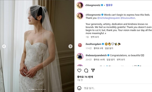 모레츠는 인스타그램에 웨딩드레스를 입은 사진을 게시하고 자신의 결혼 소식을 알렸다.