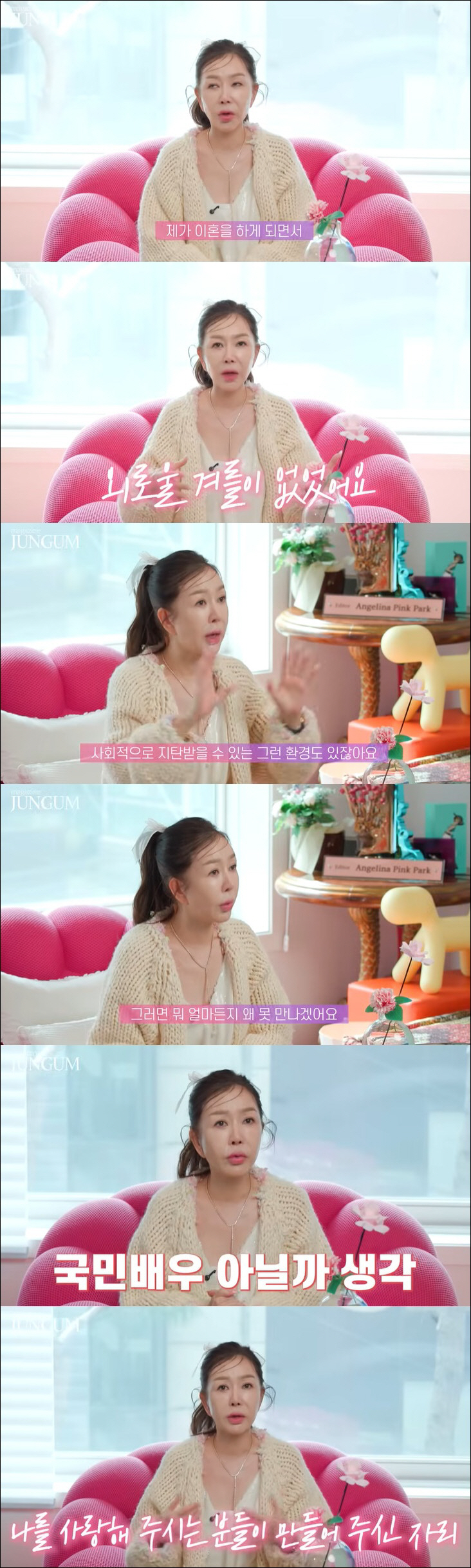 박준금은 "예전에 몰랐던 무대가 너무 신성하게 느껴지고 고맙다. 내 인생을 아름답게 꾸며줘서 감사하다"며 "배우의 이름을 전 국민의 60% 이상이 알면 그건 국민배우라고 칭해주지 않냐. 내가 이렇게까지 성장할 때 나 혼자 성장했을까? 나를 사랑해주는 시청자 분들이 만들어주셨다 생각한다. 그거에 대한 책임감, 무대가 어깨 위에 있다"고 밝혔다.