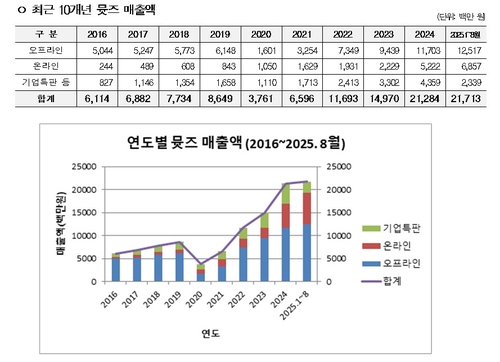 4∼6월에 평균 20억원대였던 '뮷즈' 매출은 7월 한 달간 49억5천700만원을 기록하며 배로 늘었고, 8월에는 52억7천600만원을 달성했다.