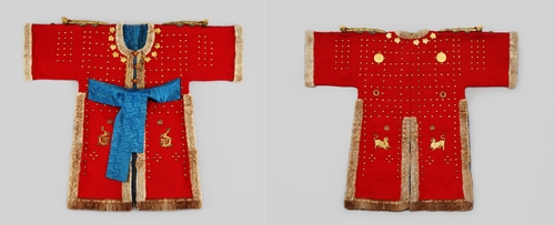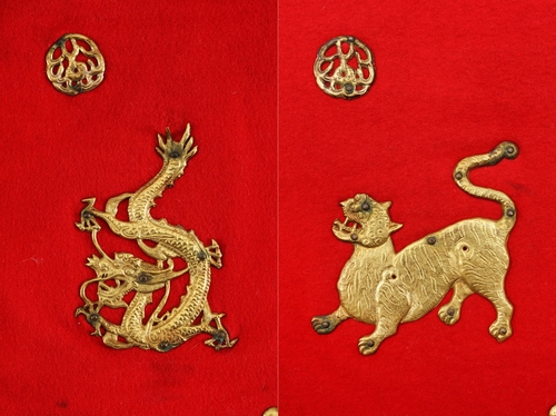 또 발가락이 4개 달린 용을 뜻하는 사조룡(四爪龍)과 호랑이 형상, 여의주 등을 금빛으로 장식하고, 어깨 부분은 용 모양 장식을 달았다.
