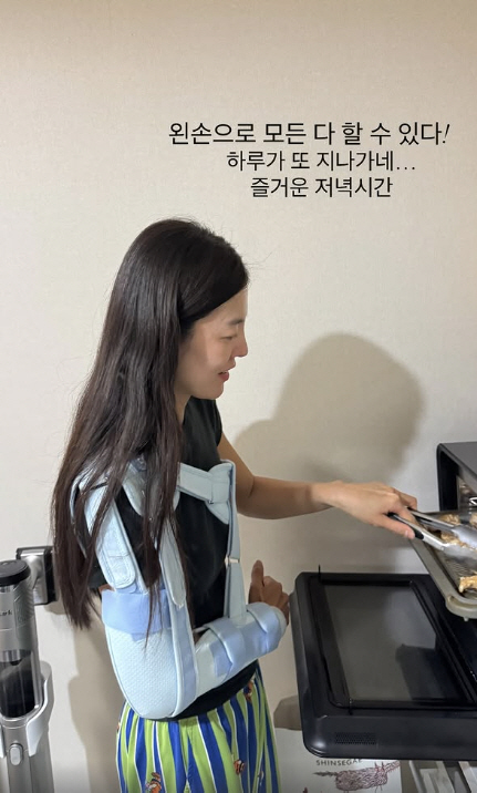 3일 김성은은 "왼손으로 뭐든 다 할 수 있다! 하루가 또 지나가네. 즐거운 저녁 시간"이라며 근황을 전했다.