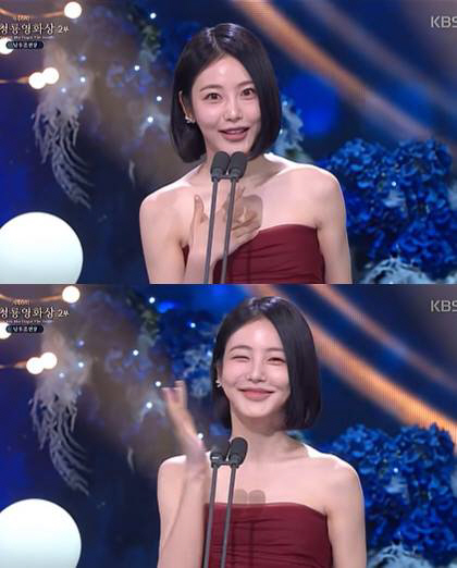 이날 객석을 가득 채운 배우들은 무대와 활발한 소통으로 시상식에 활기를 더했다. 남우조연상 시상자로 등장한 신예은은 대선배들 앞에서도 주눅들지않는 '리액션퀸'으로 자리를 확실히 다졌다. 신예은은 "제가 자칭, 타칭 리액션 장인이잖나. 그래서 다음에 만약 '카메라가 나한테 온다' 싶을 때 어떻게 리액션을 하면 좋을지 제가 보여드려도 괜찮겠냐"고 운을 뗀 뒤 "어머, 날 찍는다니!"라고 말하며 여러 포즈를 취해 웃음을 자아냈다.