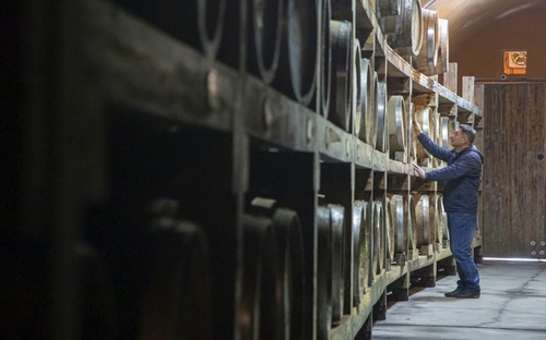 저장고에는 3단 높이로 쌓아놓은 오크통이 가득하다. 저마다 이름표처럼 용량과 날짜가 적혀 있어 묵직한 시간이 켜켜이 쌓인 느낌을 준다.