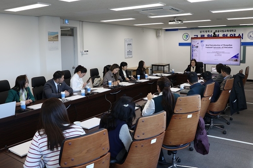 (원주=연합뉴스) 임보연 기자 = 상지대 인문사회연구원은 몽골국립대학교 몽골어능력평가센터와 교류 협력 체계 구축을 위한 업무협약(MOU)을 체결하고 공동 워크숍을 진행했다고 5일 밝혔다.