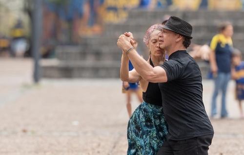 거리 한복판에서 흘러나오는 탱고 선율에 발걸음이 멈춘다. 휴대용 스피커에서 울리는 연주에 따라 중년의 남녀 무용수가 탱고를 추며 골목을 압도한다. 젊은 무희들보다 빠르진 않지만, 발끝의 노련함과 표정에서 묻어나는 깊이는 시선을 붙들기에 충분했다.