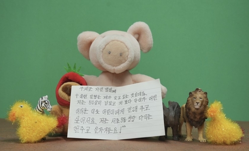 서울 명동의 자선냄비엔 최근 한 50대 기부자가 가지고 있던 인형 여러 개를 편지와 함께 기부했다.