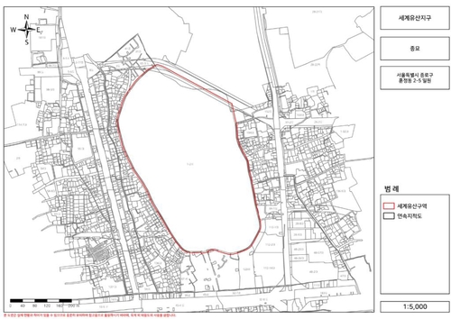 세운4구역의 경우, 종묘 세계유산지구 범위에는 포함되지 않는다.