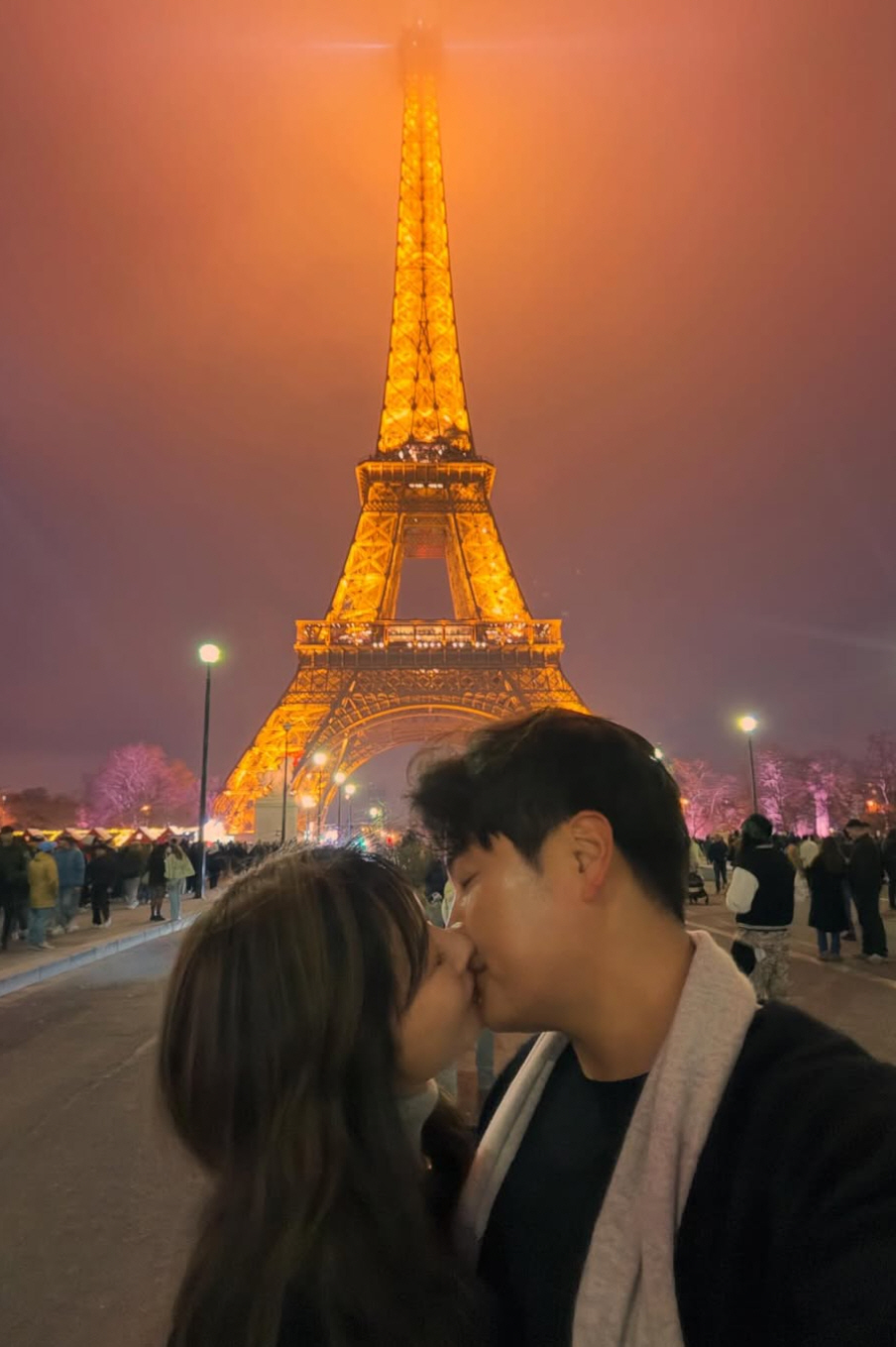 추신수♥하원미, 에펠탑 아래 진한 키스..위·아래·옆, 각도도 다양