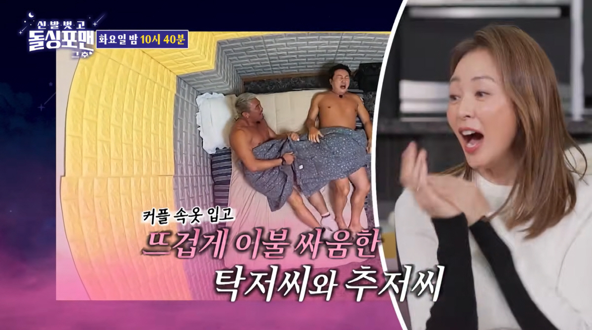 이상민은 야노 시호에게 "탁재훈 씨와 추성훈 씨가 함께 프로그램에 출연한 것 보셨나"라고 물었고 야노 시호는 "들었다"라고 답했다. 그러자 충격적인 장면이 공개됐다. 추성훈과 탁재훈이 지난 8월 '마이턴'에서 커플 속옷만 입고 이불 싸움을 벌인 모습이 나온 것.