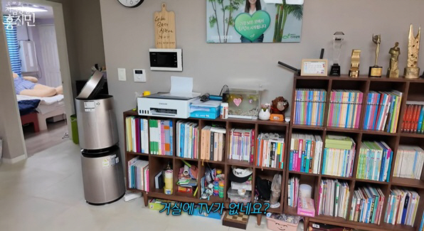 특히 거실은 TV가 없고 책으로 꽉 차 있어서 눈길을 끌었다.