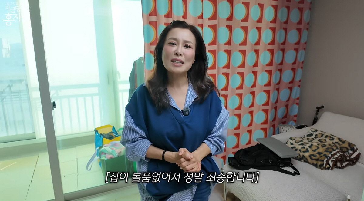 홍지민은 현관에서 제작진을 맞이하며 "정말 누추해서 공개를 해도 되나 싶다. 다른 여배우들은 럭셔리하게 하던데 저는 그런 게 없다. 기대하시면 안 된다. 평범하고 사람 사는 곳이다"라고 말했다.