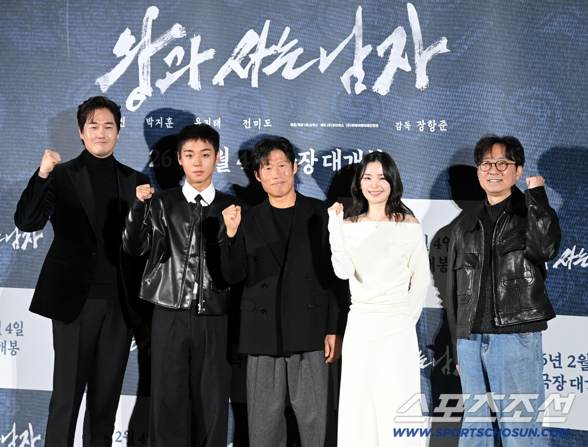 영화 '왕과 사는 남자' 제작보고회가 19일 서울 용산구 이촌동 CGV 용산아이파크몰에서 진행됐다. 현장에는 배우 유해진, 박지훈, 유지태, 전미도와 장항준 감독이 참석했다.