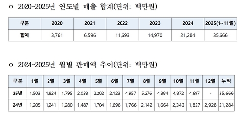 이후에도 '뮷즈' 매출은 9월 43억8천400만원, 10월 48억7천200만원, 11월 46억9천700만원 등 연속으로 40억원대를 찍었으며 이달에도 40억원을 넘어선 것으로 전해졌다.
