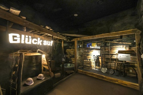전시관에 설치된, 지하 1천200m 깊이까지 내려가는 탄광 갱도 모형 옆의 스피커에서는 '글뤽 아우프'(Gluck Auf)라는 외침이 쉴 새 없이 울려 퍼진다.