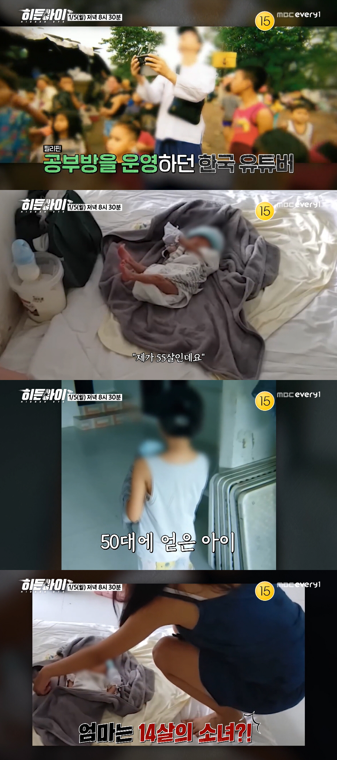 라이브 이슈에서는 가난한 필리핀 아이들을 가르친다는 명목으로 공부방을 운영하며 성범죄를 일삼고 그곳에 다니던 14살 소녀를 임신시킨 50대 남성 정 씨의 추악한 실체를 파헤친다. 정 씨는 필리핀 빈민가 공부방 운영 모습을 촬영해 업로드하며 후원금을 모았고, 이를 통해 어려운 환경의 아이들에게 금전적 지원까지 이어갔다. 그러나 정 씨는 금전적 지원을 이용해 아이들을 통제하며 일상적으로 신체를 접촉하는 등 성범죄를 저지르기 시작했고, 그 과정에서 14살 소녀를 임신시킨 사실까지 드러났다. 함께 공부방에 다니던 학생들은 "벌거벗은 정 씨와 임신한 피해 아동이 함께 있는 걸 봤다"고 진술했으며, 정 씨가 부적절한 영상을 시청한 뒤 피해 아동에게 이를 따라 해도 되는지 묻는 장면을 목격하기도 했다고 증언했다. 하지만 정 씨는 자신의 행동을 정당화하는 듯한 믿기 힘든 망언을 쏟아내며 뻔뻔한 태도로 일관했는데, 이에 프로파일러 권일용은 "아동 성범죄자들의 전형적인 주장"이라며 날카롭게 지적했다. 빈민가 아이들을 대상으로 성범죄를 저지른 정 씨의 상식 밖의 망언과 사건의 전말은 1월 5일 월요일 오후 8시 30분, MBC에브리원 '히든아이'에서 확인할 수 있다.