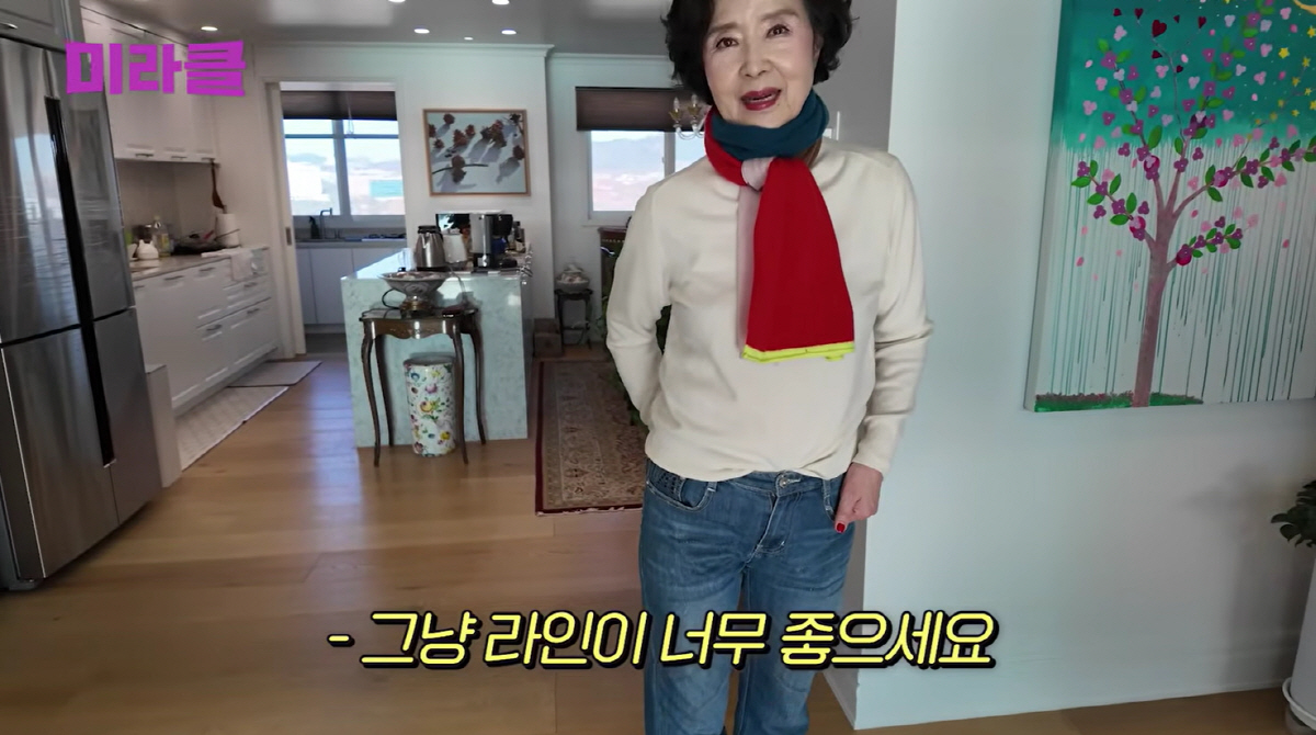 또한 윤미라는 애장템 청바지를 꺼내 직접 피팅하며 완벽한 라인을 선보였다. 제작진이 "청바지가 너무 어울린다. 라인이 좋다"고 감탄하자, 윤미라는 "아직은 그렇다. 근데 이제 엉덩이가 무너질까 봐 무섭다"고 솔직하게 털어놓았다. 그럼에도 큰 키와 늘씬한 몸매 덕분에 청바지 핏은 완벽하게 유지됐다.