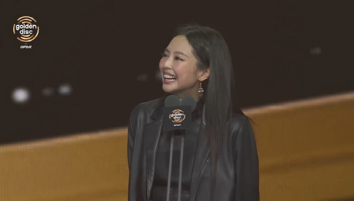 제니는 지난 10일 대만 타이베이돔에서 열린 '제40회 골든디스크어워즈 with 업비트'에서 솔로 정규 1집 'Ruby'로 아티스트 대상, 디지털 음원 부문 본상, 글로벌 임팩트 어워즈 위드 프리즘을 수상했다. 여기에 블랙핑크 디지털 싱글 '뛰어(JUMP)'로 디지털 음원 부문 본상까지 추가하며 총 4개의 트로피를 품에 안았다.
