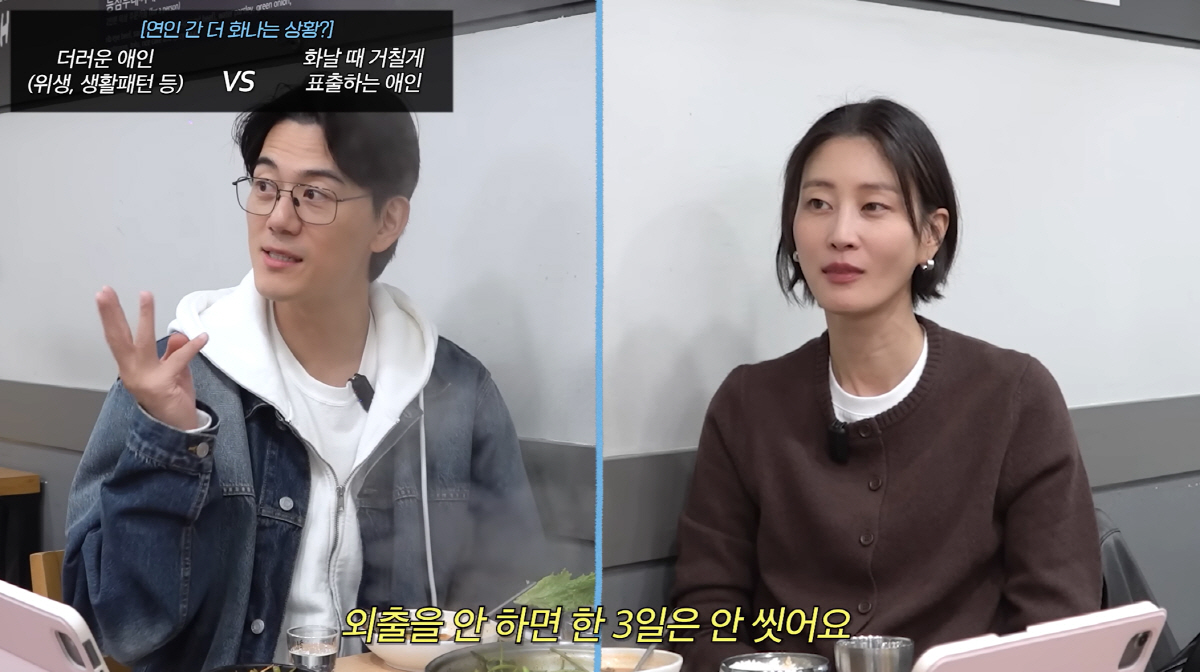 이현이는 고민을 하더니 "더러운 애인이 더 싫다. 나는 많이 안 씻어봤자 3일"이라며 목에 핏대를 세웠고 홍성기는 제작진을 보며 "정상인가요?"라고 물어 웃음을 안겼다.