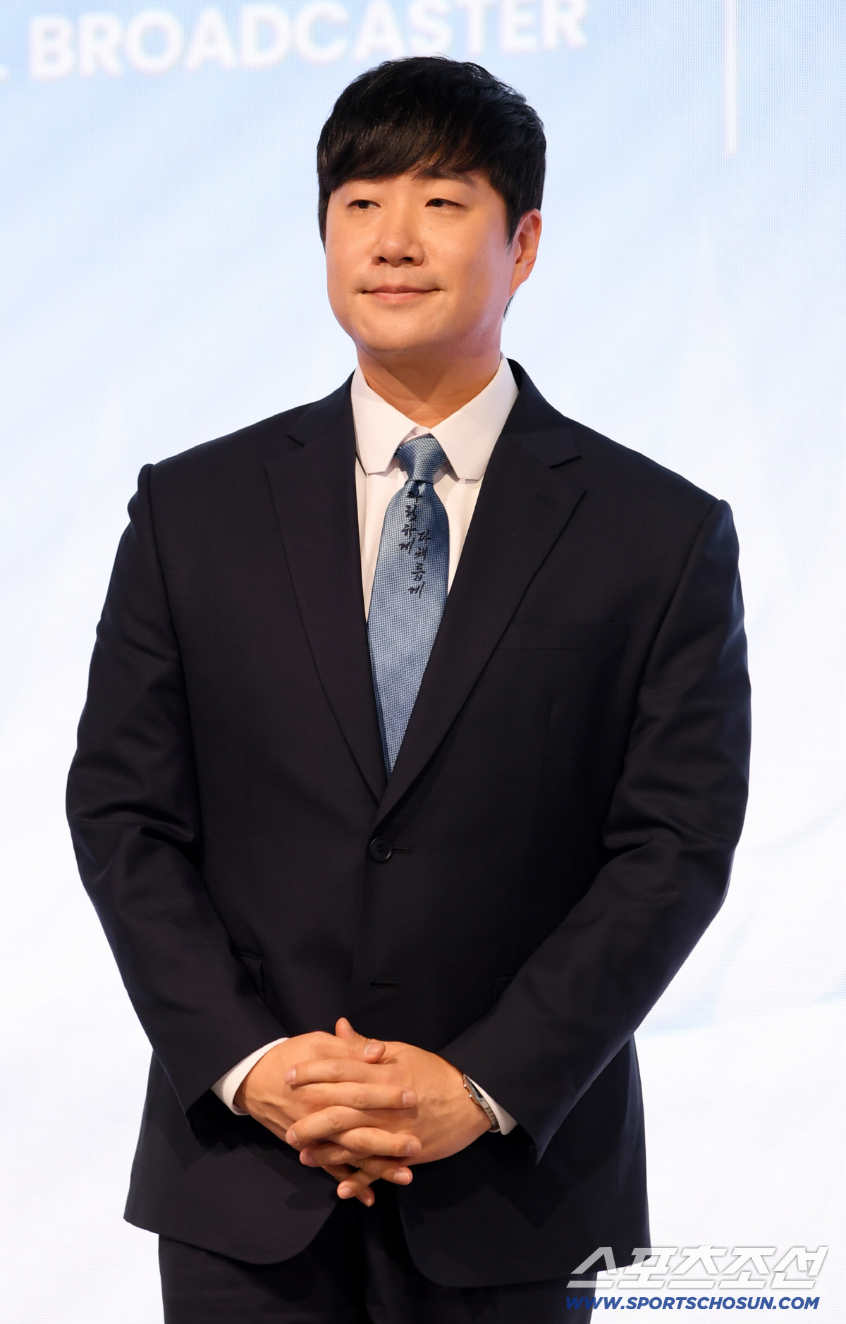 JTBC 2026 밀라노 코르티나 동계올림픽 기자간담회가 14일 서울 여의도 페어몬트 앰배서더에서 열렸다. 배성재가 포토타임을 갖고 있다. 여의도=박재만 기자 pjm@sportschosun.com
