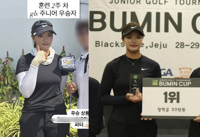 앞서 재아 양은 지난해 10월 열린 골프 대회에서 우승 트로피를 들어 올리기도 했다.