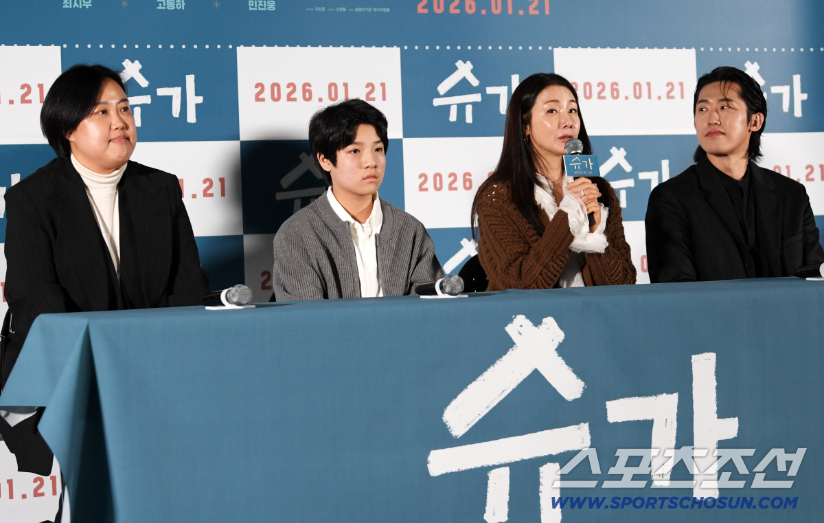 영화 '슈가' 언론배급시사회가 15일 서울 광진구 자양동 롯데시네마 건대입구에서 열렸다. 최신춘 감독, 고동하, 최지우, 민진웅이 인터뷰를 하고 있다. 자양동=박재만 기자 pjm@sportschosun.com