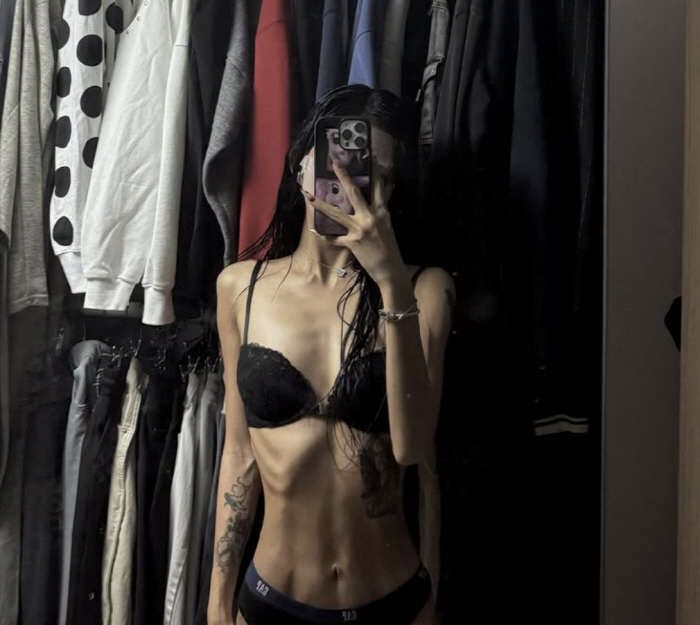 또 옷을 갈아입는 영상에서의 자신의 모습에 "오늘 룩북 영상 편집하는데 옷 갈아입던 장면 보고 새삼 체지방이 다 거덜나긴 했구나? 라는 게 보였음"이라며 앙상하게 드러난 자신의 뒷모습을 공개했다.