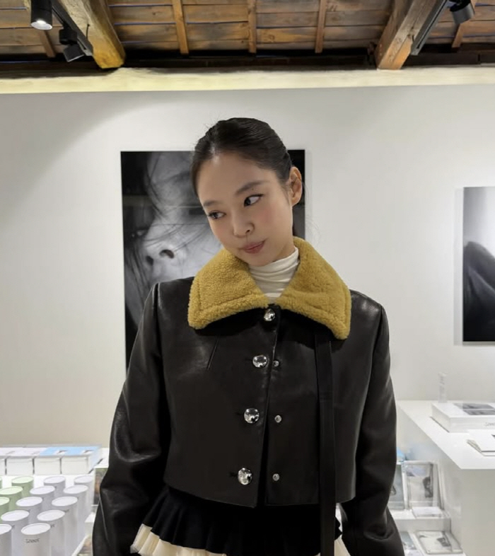 16일 제니는 개인 SNS에 "meet J2NNI5"라는 글과 함께 온통 자신의 얼굴이 가득한 전시회장에서 작품을 감상하는 모습을 공개했다.