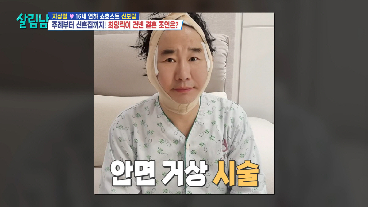 '64세' 최양락, 성형 후 붕대 감고 부은 얼굴..."안면거상+쌍꺼풀+모발이식 했다" ('살림남')