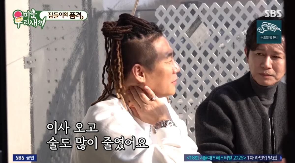 김민종은 윤민수에게 "20년 만에 (싱글로) 돌아왔는데, 혼자 사는 거 외롭지 않고 괜찮아?"라고 물었고 윤민수는 "편하고 좋다. 이사 오고 술도 많이 줄였다"라고 답했다. 김민종은 "가끔 청담동에서 많이 젖어 있는 모습을 봤다"라고 폭로했고 윤민수는 "그때가 절정이었는데 이사 와서 술을 많이 줄였다"라며 멋쩍은 웃음을 지었다.