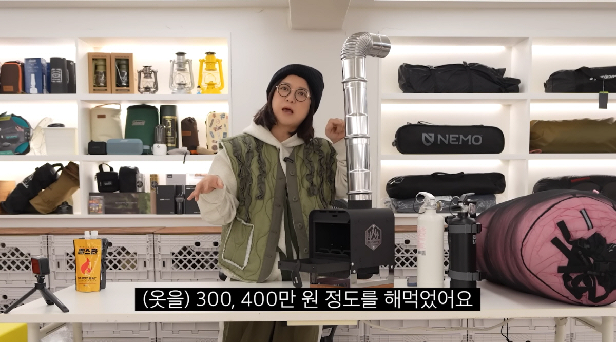 화목 난로를 공개하면서는 "연통이 뜨겁다는 걸 잘 모르시더라. 화목 난로를 장시간 사용할 때 연통이 용광로처럼 빨갛게 되는 경우가 있다. 그때 연통을 만지면 바로 화상을 입는다"라고 말했다. 그러면서 "6~7년 전 처음 화목 난로를 샀을 때 세 명의 옷이 손상된 적이 있다. 구스 털이 엄청 날렸다. (연통 쪽에 팔이 닿았다가) 300~400만 원 정도를 해먹었다"라며 아찔했던 기억을 꺼냈다.