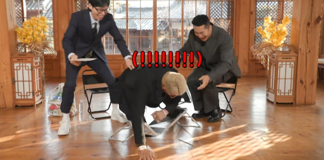 이를 듣고 웃음을 참지 못하던 추성훈은 테이블에 손을 얹은 채 웃다가 갑자기 테이블을 박살 내 모두를 놀라게 했다. 당황한 추성훈 앞에서 유재석은 부서진 테이블 사이로 얼굴을 내밀며 "이걸 이렇게 해놓으면 어떡하냐"고 말해 웃음을 더했다.