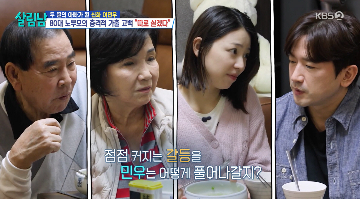 결국 이민우 어머니는 이민우에게 "이렇게 같이 살아야 하냐. 그만 신경 쓰고 남원으로 내려갔으면 좋겠다"라며 분가를 언급했다. 이민우 아버지는 어머니에게 "민우에게 뭘 얘기해? 그냥 우리가 내려가면 되지"라고 말했다.