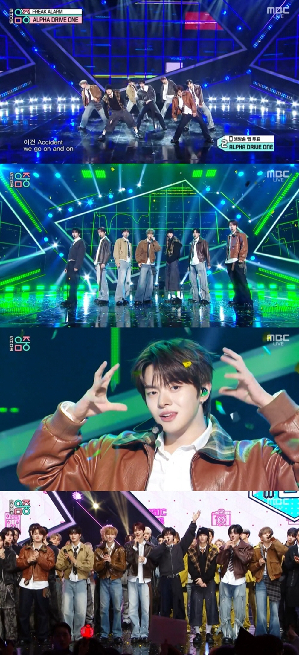 알파드라이브원은 'FREAK ALARM' 무대에서 에너지 넘치는 퍼포먼스는 물론 멤버 개개인의 매력이 살아 있는 표정 연기로 무대를 가득 채웠다. 데뷔 2주차라는 수식어가 무색할 만큼 안정적인 무대를 보여주며 차세대 글로벌 K-팝 주자로서의 존재감을 각인시켰다.