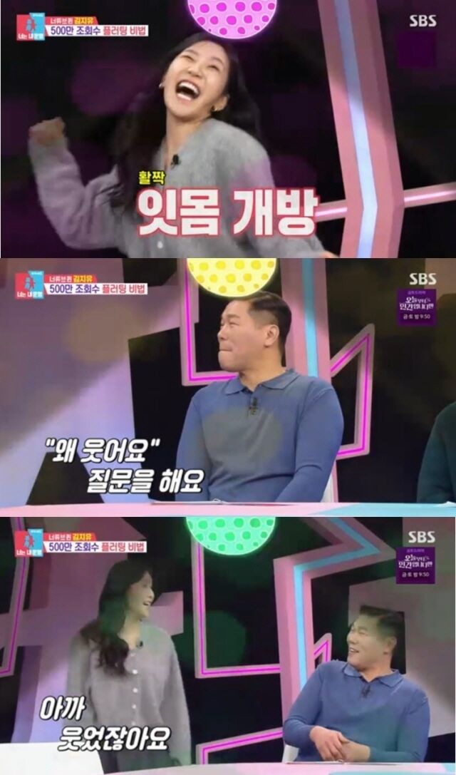 [스포츠조선 조민정 기자] 코미디언 김지유가 농구선수 출신 방송인 서장훈을 상대로 '현실 플러팅 실전 기술'을 공개하며 스튜디오를 뒤집어놨다.