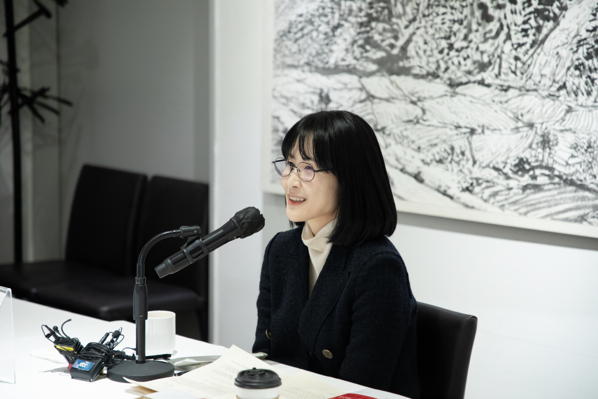 제49회 이상문학상 대상을 차지한 '눈과 돌멩이'의 위수정 작가가 지난 27일 서울 정동 달개비'에서 열린 이상문학상 대상발표 기자간담회에 참석해 질문에 답하고 있다. 사진=다산북스
