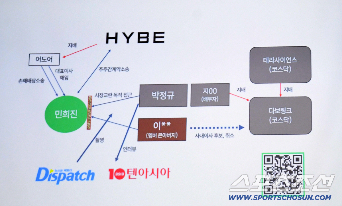 김 변호사는 "박정규와 이모 씨의 전화통화 내용을 전혀 이해하지 못했던 민 전 대표는 영상에서 확인하셨듯 멤버 중 한 명의 큰아버지인 이모 씨에게 '다보, 테라 이게 뭐예요?'라고 묻는다. 이에 이모씨는 영상에서 확인하셨듯 '테라는 박정규, 다보는 자신이 대주주인 회사'라고 설명한다"라고 덧붙였다.