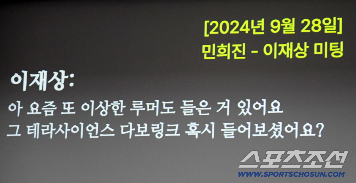 앞서 이재상 대표로부터 테라사이언스, 다보링크를 들었다는 점 등을 들어 "2024년 9월 30일 민 전 대표와 박정규가 만날 수밖에 없을 것이 라는 것을 사전에 하이브 경영진과 대주주가 알고 있었다"고 분석했따.