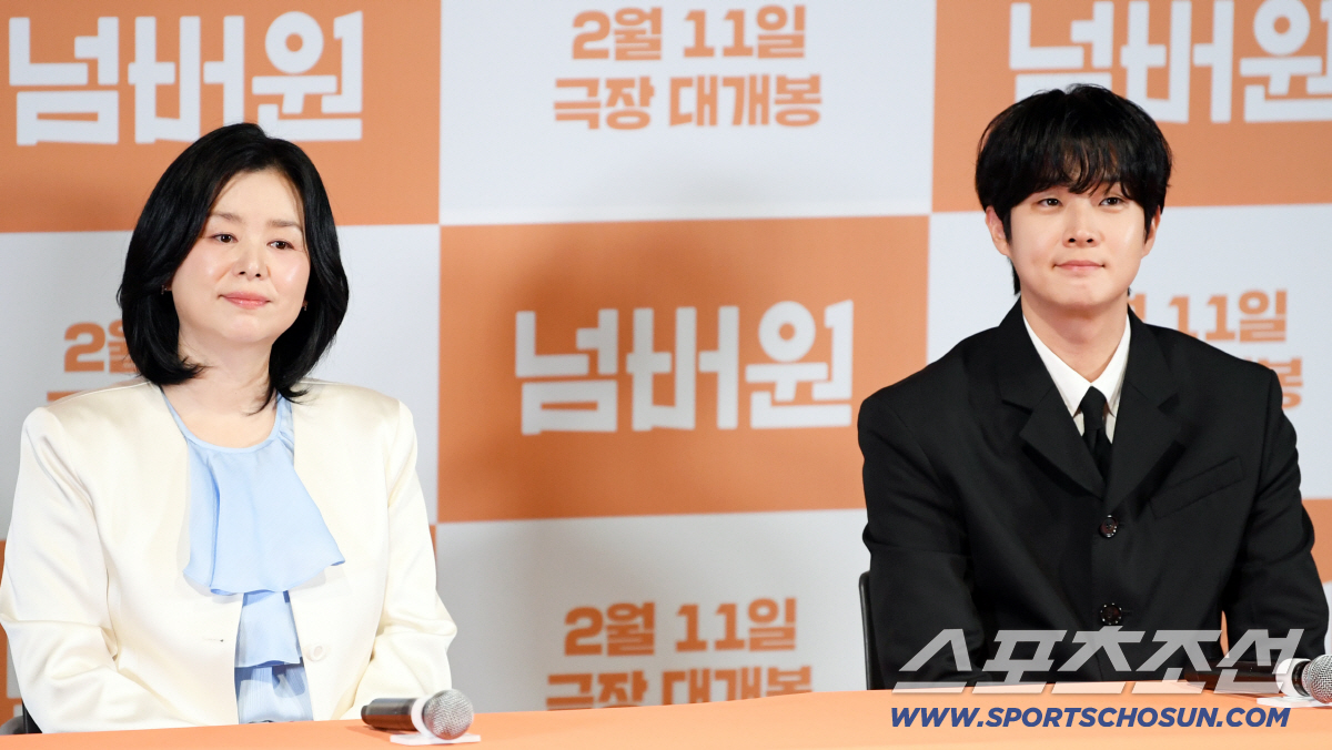 영화 '넘버원' 언론시사회가 29일 서울 용산구 한강로동 CGV용산아이파크몰에서 열렸다. 장혜진, 최우식이 인터뷰를 하고 있다. 용산=박재만 기자 pjm@sportschosun.com/2026.01.29/