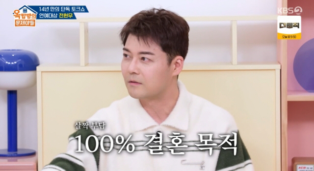 이날 전현무는 결혼 계획을 묻자 "내일모레면 반백 살인데 너무 혼란스럽다"고 털어놨다. 이어 새신랑 김종국에게 "원래 비혼이었는데 너무 좋은 분을 만나서 간 거냐. 아니면 원래 결혼 생각이 있어서 찾다가 그분을 만난 거냐"고 진지하게 물었다.