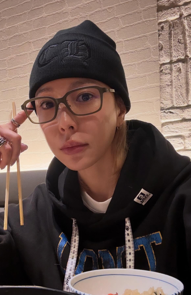 특히 화장기 거의 없는 얼굴에 후드티와 비니, 안경을 착용한 편안한 차림이 눈길을 끈다. 꾸밈없는 모습 속에서도 한결 부드러워진 표정과 환한 미소가 담겨 있어 팬들에게 반가움을 안겼다.