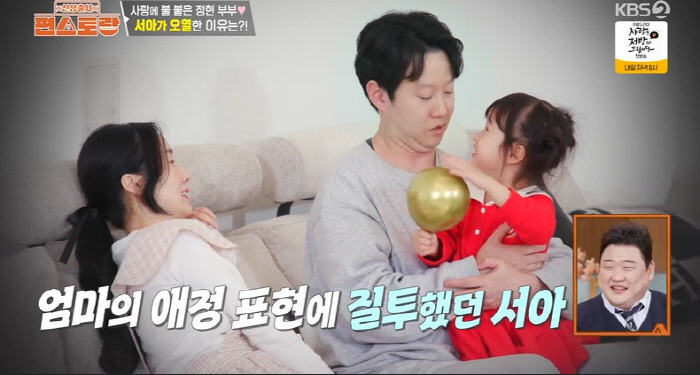 다음날에도 이정현의 애정공세는 계속됐다. 하지만 두 사람의 달달한 모습에 질투가 폭발한 서아는 결국 "사랑하지마"라며 오열했다. 서아 양은 평소 아빠와 결혼하겠다고 말할 정도로 아빠 껌딱지라고. 놀란 남편은 급하게 서아에게 가 "아빠는 서아만 사랑해"라며 딸을 달랬다.