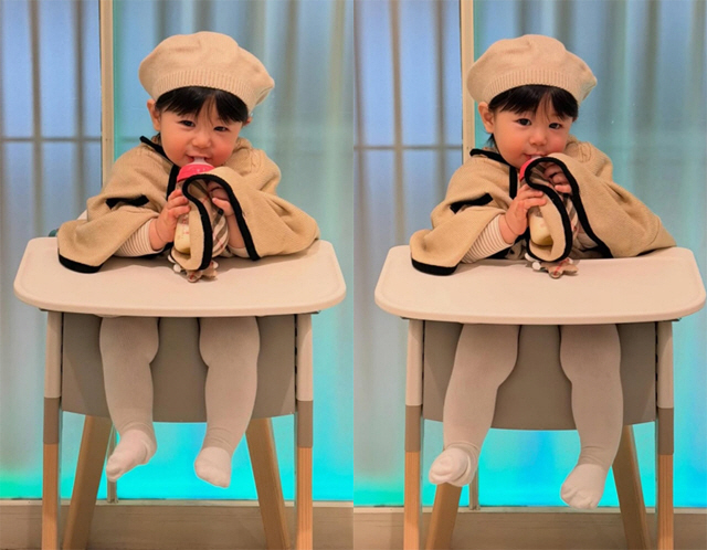 공개된 사진 속 하루는 외삼촌에게 물려받은 옷을 입고 깜찍한 매력을 뽐냈다. 따뜻해 보이는 니트 모자에 통통한 다리가 돋보이는 흰색 스타킹을 매치해 귀여움을 더했다. 클로즈업 사진에서는 사랑스러운 미소까지 지으며 인형 같은 자태를 드러냈다.