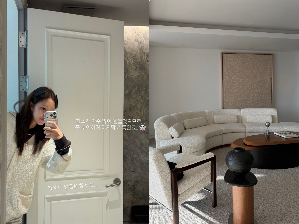 2일 효민은 자신의 SNS에 "청소가 아주 많이 힘들었으므 홈 투어하며 마지막 기록 완료"라는 글과 함께 여러 장의 사진을 게재했다.
