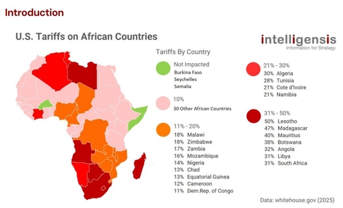 2026년 아프리카 경제는 대외적 충격과 내생적 성장이 충돌하는 양상을 보인다. 가장 큰 변수는 역시 미국의 '해방의 날'(Liberation Day) 행정명령에 따른 보편 관세 도입이다. 2025년 출범 직후 트럼프 행정부가 단행한 10∼20%의 상호 관세는 대미 수출 의존도가 높은 일부 아프리카 국가들에 직접적인 타격을 입혔다. 특히 남아프리카공화국의 자동차 부품 산업이나 레소토의 의류 제조업은 관세 폭탄으로 인해 고용 위기를 겪으며 '미국 우선주의'의 파고를 온몸으로 받아내고 있다.